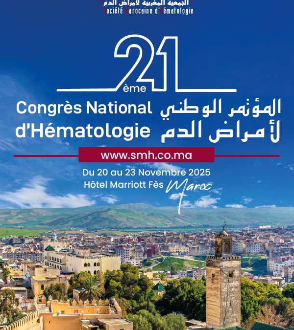 La Société Marocaine d’Hématologie (SMH) a le plaisir de vous annoncer que le 21ᵉ Congrès National d’Hématologie se déroulera du 20 au 23 novembre 2025 au Marriott Fès.
